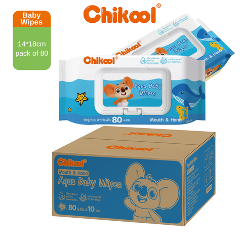 Toallitas para bebé Chikool Aqua 140X180mm 45 Gsm Paquete de 80 toallitas húmedas de poliéster no tejidas de encaje hilado sin perfume con tapa para Tailandia